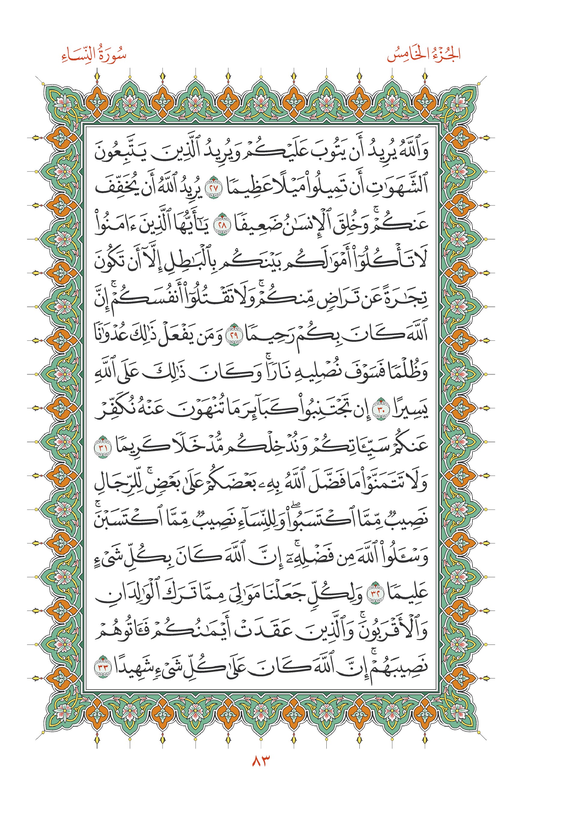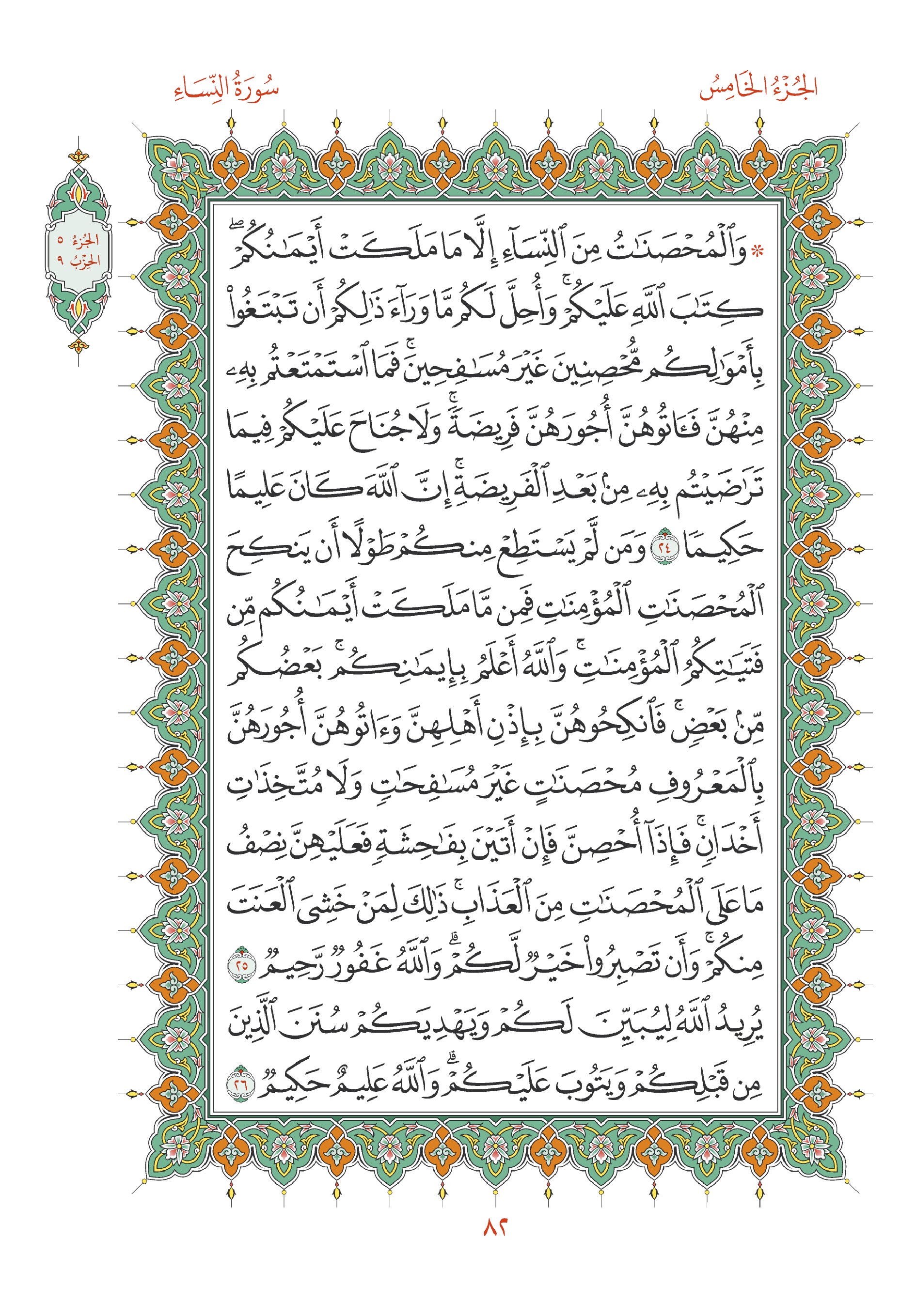 يبدأ من سورة النساء آية رقم 24 وينتهي بسورة النساء آية رقم 147.
