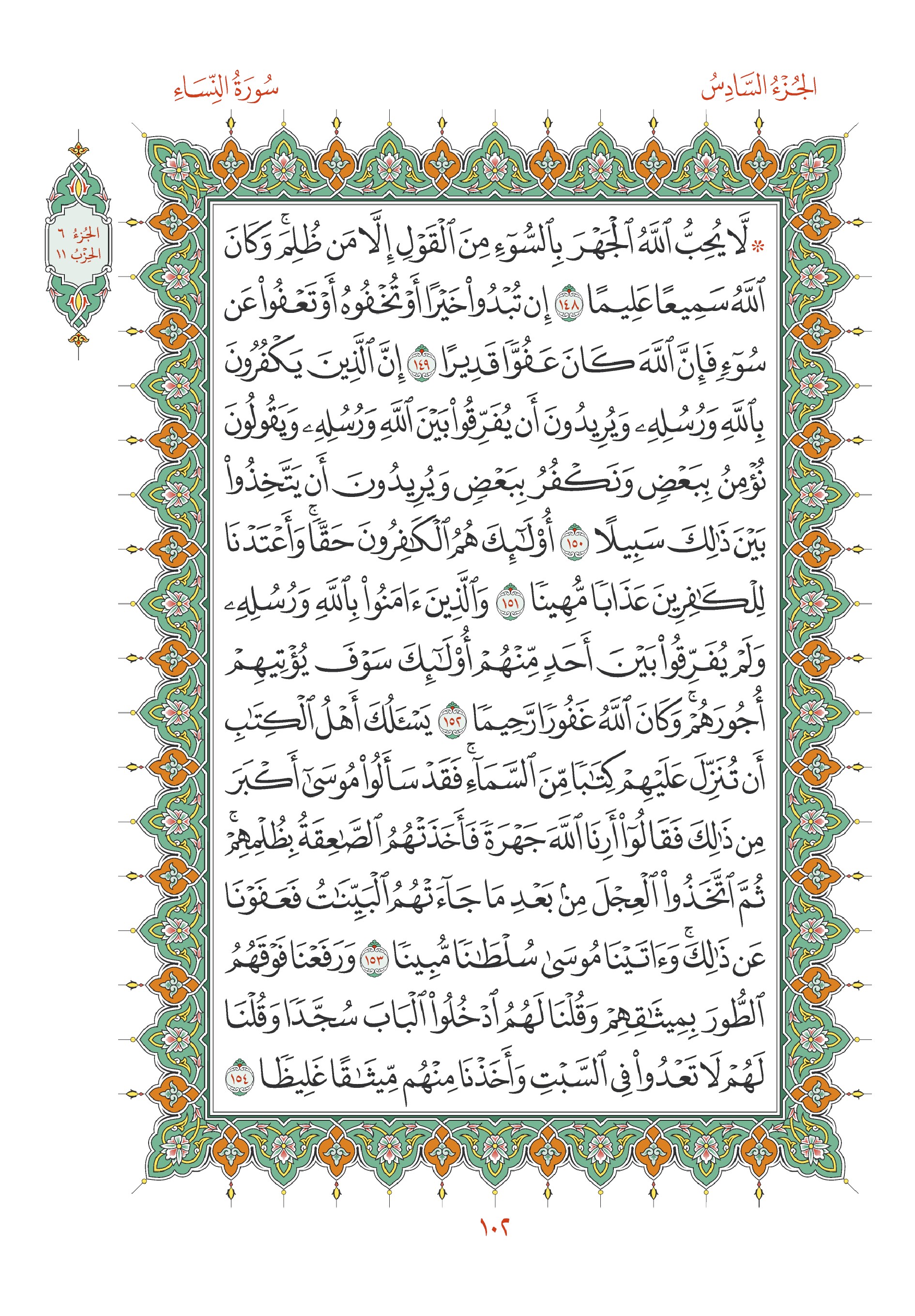 يبدأ من سورة النساء آية رقم 148 وينتهي بسورة المائدة آية رقم 81.
